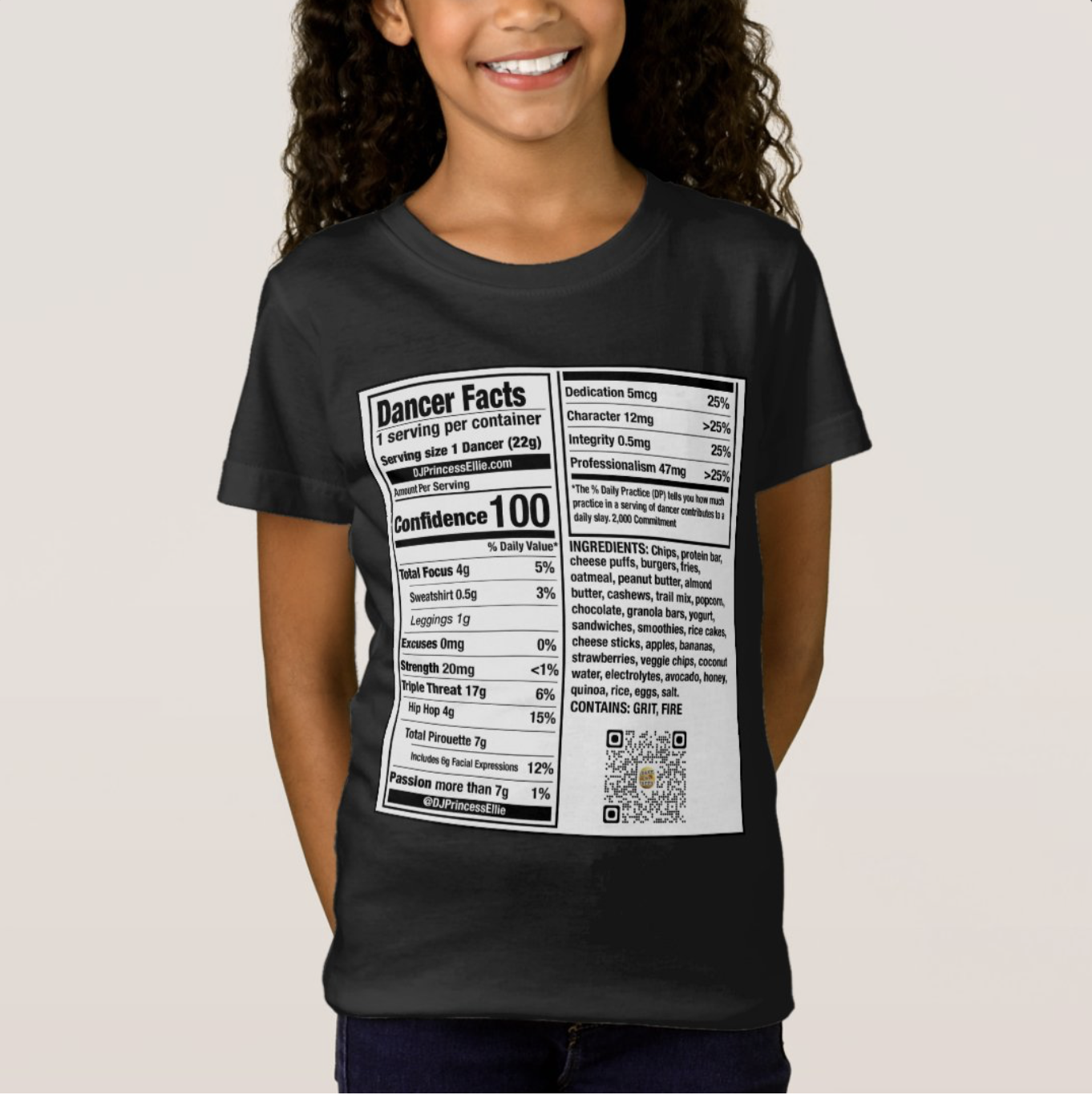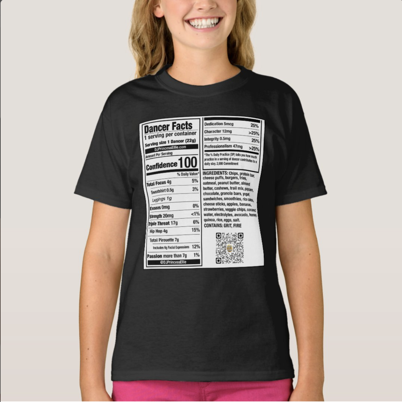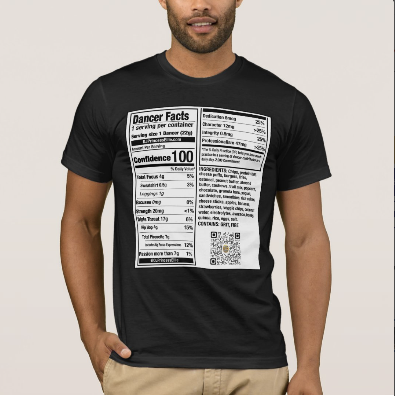 Dancer Nutrition Facts T-shirt: CUSTOMIZABLE (See size chart in the images)