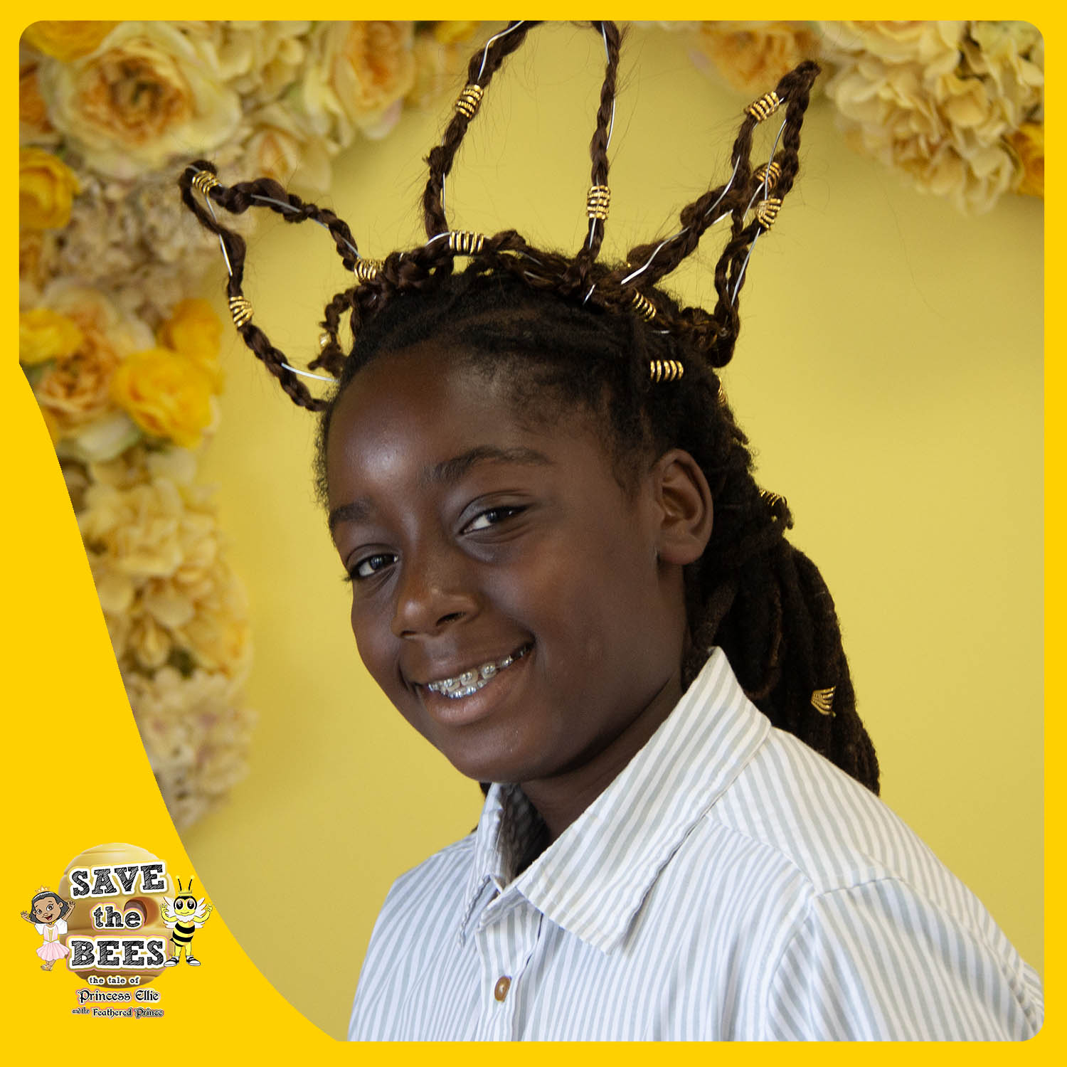 Save the Bees the tale of Princess Ellie and the Feathered Prince is about a curious bee that is bullied because he has feathers instead of regular bee wings. Princess Ellie and the Feathered Prince go on an Adventure Quest filled with riddles, hidden butterflies, and songs. They find a way to help save their honeycomb by learning how to plant a wildflower and by using the shadow from the Feathered Prince’s wings to help germinate the seeds. The Feathered Prince realizes that his feathered wings are a gift in disguise and the bees learn how to fly again.