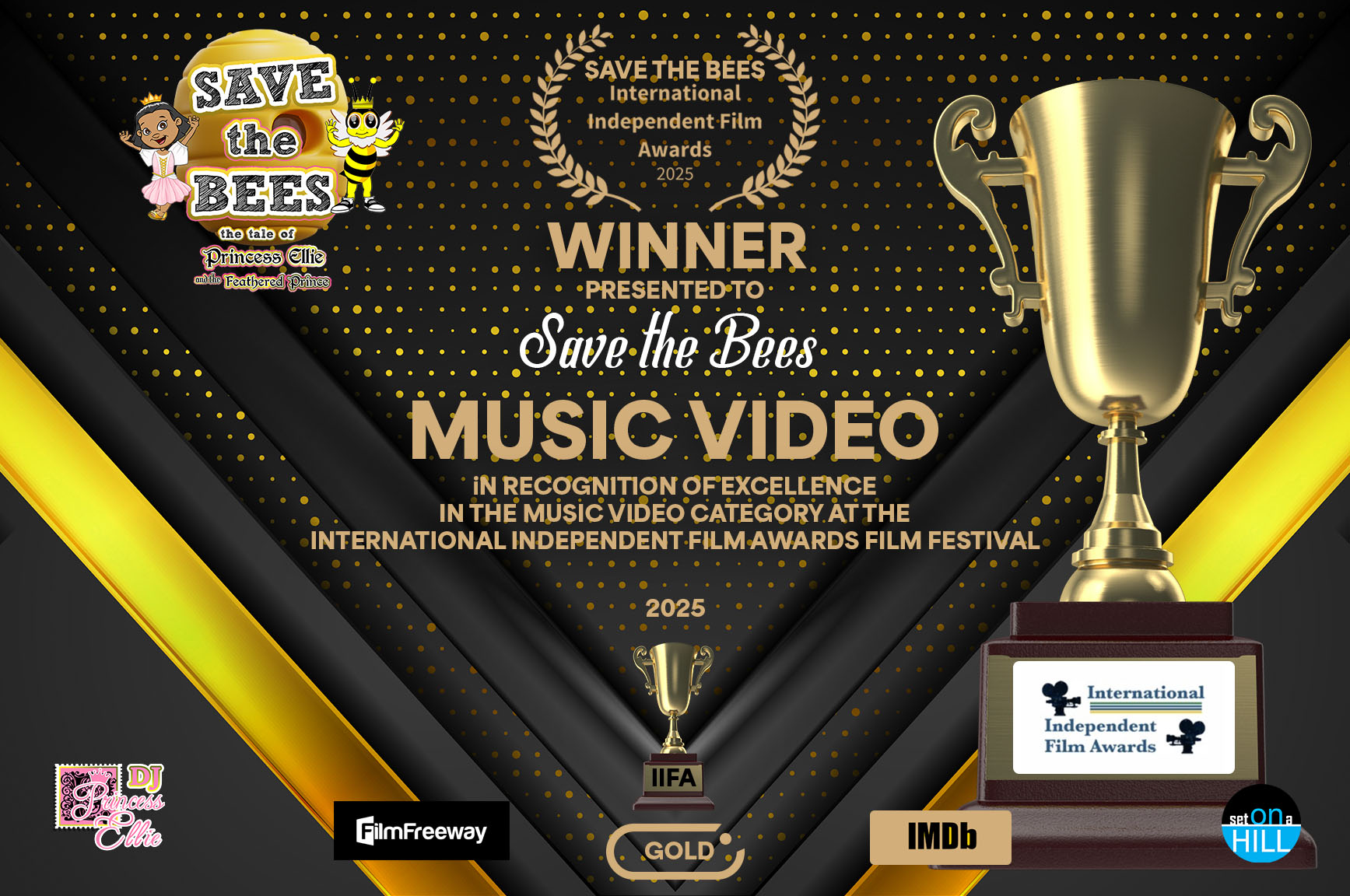 Save the Bees Film won a Film Festival Award. We won Gold for our Music Video at the International Independent Film Awards 2025!